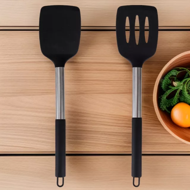You’ll receive 2 black silicone spatulas, perfectly matched and ready to tackle all your kitchen tasks.