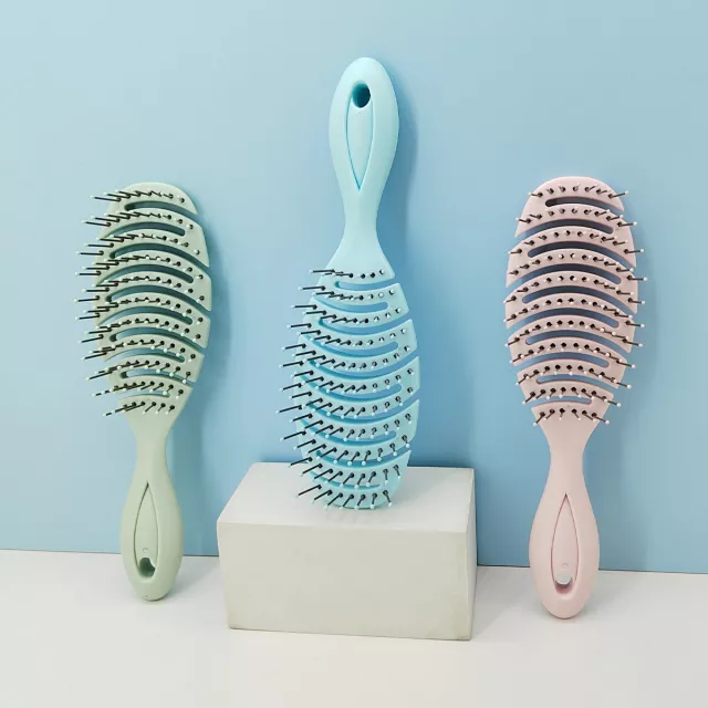 Crafted from durable plastic, this rib-style brush features a clever hollow-out design that improves airflow, helping your hair dry faster while reducing heat exposure. The flexible bristles gently massage the scalp, boosting circulation and promoting healthier-looking hair. Designed for all hair types – straight, curly, thick, or fine – it’s especially helpful for managing tangles without pulling or breaking strands.