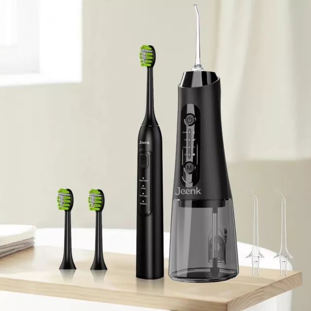 Electric Sonic Toothbrush & Water Flosser Set with 4 Modes and 6 Heads