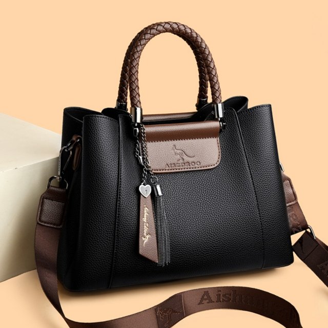 This handbag comes packed with smart features that make organization simple. The spacious interior includes multiple compartments such as an interior slot pocket, a cell phone pocket, an interior zipper pocket, and an interior compartment, allowing you to keep your essentials neatly arranged. The soft leather feel and woven handle offer comfort and durability, while the solid pattern ensures timeless appeal. Lightweight yet roomy, it’s ideal for everyday carry and suits a variety of occasions.
