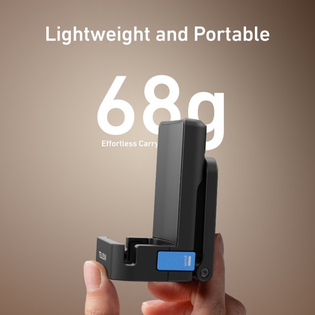 This versatile stand offers strong magnetic attachment, smooth rotation, and a quick-release design that lets you switch devices or angles instantly. It delivers unobstructed screen rotation and easy access to buttons, making it ideal for fast shooting sessions. With its side cold shoe and 1/4 inch screw mount, you can effortlessly add accessories such as lights, microphones, or a tripod to upgrade your filming setup. Its compact size and feather-light 2.4 oz weight make it easy to carry and perfect for mobile creators.