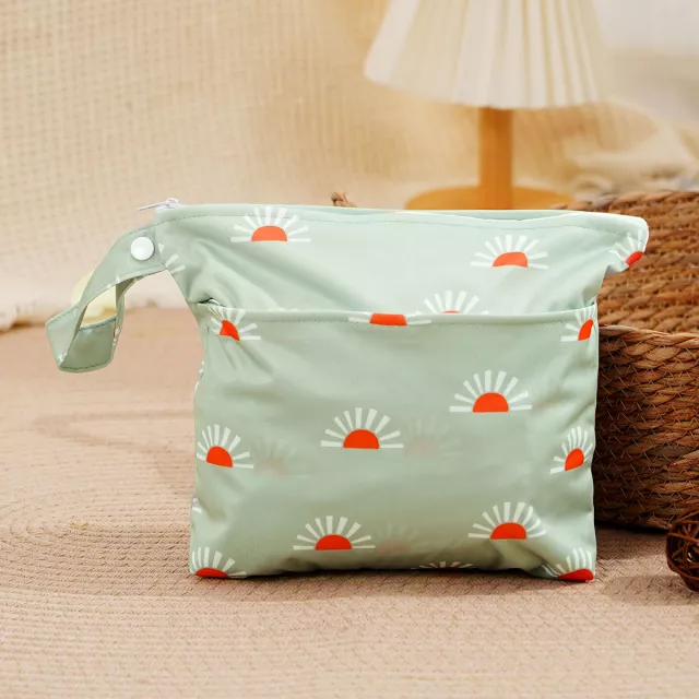 Measuring between 8 and 12 inches, it offers just the right amount of space for swimsuits, towels, baby diapers, gym clothes, or travel essentials. Its charming printed patterns make it a fun and stylish addition to any outing. Whether you’re heading to the pool, gym, daycare, or on a family trip, this bag keeps everything fresh, clean, and neatly stored.