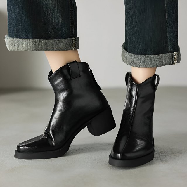 Stay confident and comfortable through the cold season with these chic Winter Wool Ankle Boots. Designed for women who want both fashion and function, these boots combine genuine leather craftsmanship with a cozy wool interior for all-day warmth. The thick square heel offers a stable lift of about 2 in. (5 cm), giving you elegant height without compromising comfort. With their modern, minimalist design and round-toe shape, these boots effortlessly complement office outfits, casual winter looks, and weekend wear.