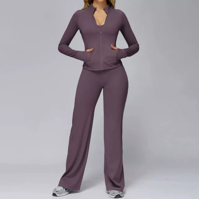 Take your workout wardrobe to the next level with this sleek and flattering Women’s Sports Set. Designed for active women who value both comfort and confidence, this two-piece outfit includes a long-sleeve zippered fitness jacket with handy pockets and high-waist yoga pants that sculpt and support your body through every move. Whether you’re stretching in yoga, sprinting on the track, or running errands, this set keeps you cool, dry, and unstoppable.
