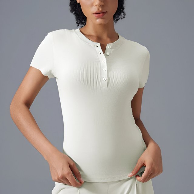 Step into your training routine with a top designed to move exactly the way you do. This women’s short-sleeve yoga and running T-shirt is crafted from a premium modal-spandex blend, offering a silky-smooth feel with just the right amount of stretch. Its slim-fit silhouette enhances your natural shape without feeling tight, while the breathable knitted fabric helps keep you cool and dry from warm-ups to cool-downs.