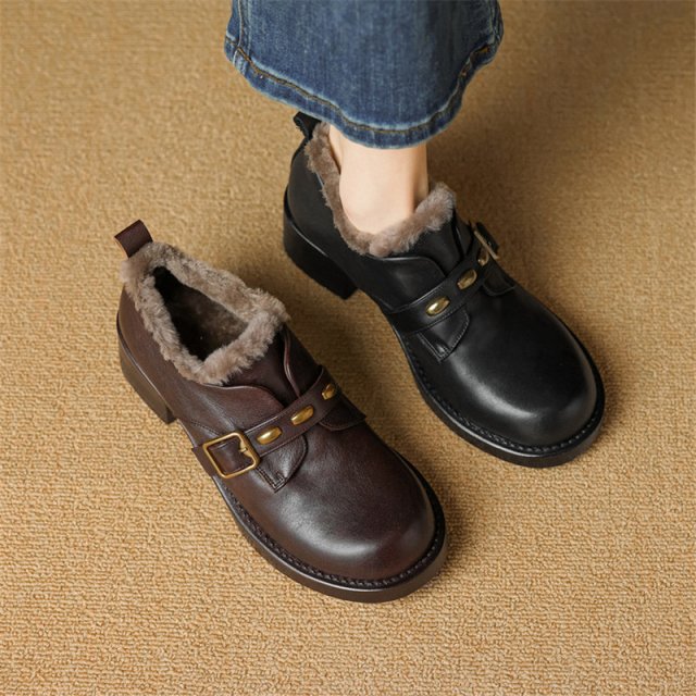 Designed for casual winter outings, these loafers are ideal for workdays, weekend strolls, or relaxed get-togethers. The round toe shape gives your feet room to breathe, while the solid pattern and neat sewn details offer a clean, polished look. Whether you pair them with jeans, skirts, or tailored pants, these shoes blend seamlessly into your everyday wardrobe.