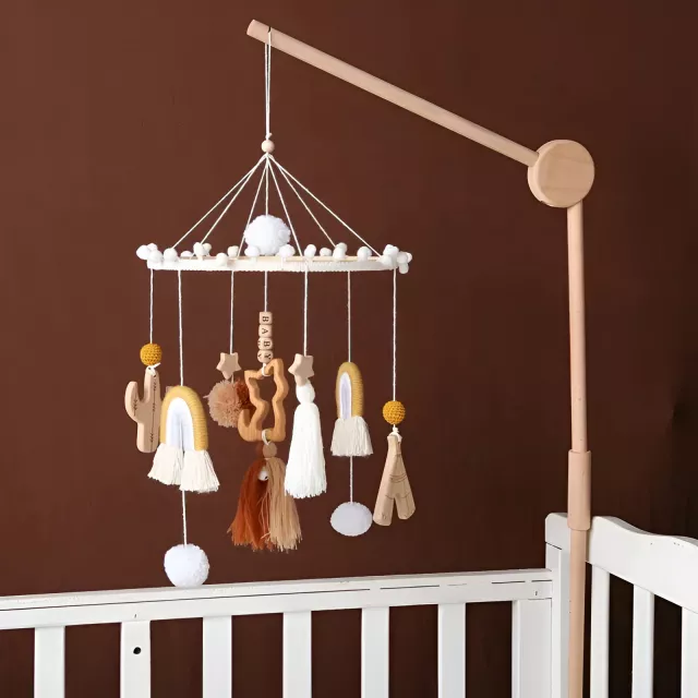 Create a soothing, engaging space for your little one with this charming Wooden Crib Mobile Bracket Set with Music Box. Designed to delight babies from newborn to 36 months, this mobile accessory adds gentle motion, soft music, and adorable cartoon-style elements to your infant’s sleeping area. Crafted from quality wood and certified safe, it brings warmth, style, and calmness to any baby room.