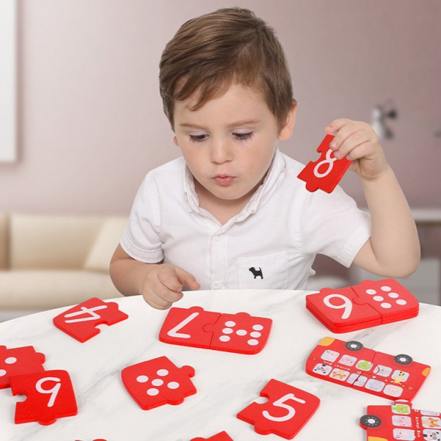 This early learning toy includes 18 beautifully crafted wooden puzzle pieces plus a storage box for tidy organization. Each piece features a number, animal illustration, or matching pattern to help children connect visuals with numerical concepts. It’s best used during playtime, preschool prep, or quiet learning moments at home, offering hands-on cognitive development without screens.